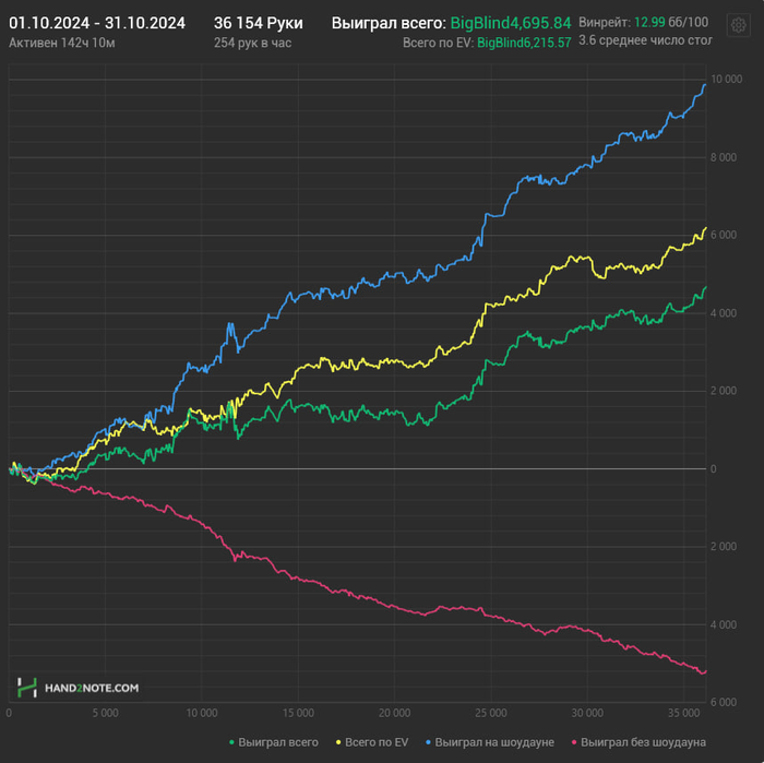 Первая новость затащил второе место высшей лиги в рейк гонке от фонда и выиграл +1к$ . Гонка длилась два месяца и я реально ставил цель занять хоть какое-то призовое место , первые две недели я даже катнул 30к рук , но потом понял что это было ошибкой гнаться за количеством рук и сбавил обороты , перешел на тщательный селект, что позволило в ноябре сделать бестманс.