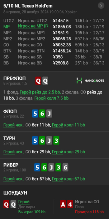 Не могу похвастаться работоспособностью в плане теории , но впервые скажу так за 6 лет я начал кайфовать от солвера. С напарником поставили четкий план и идем по нему , особое удовольствие когда начинаешь видеть за столами результаты от проделанной работы , плюс по ощущениям меньше тильтуешь когда знаешь что твоя рука спокойно играется тут чек фолд и не винишь диспу что она тебе так сдала тут .