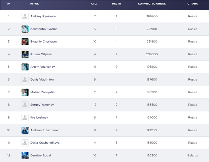 А можете дать расклад по Sochi Poker Cup? Призовые - рассадка?