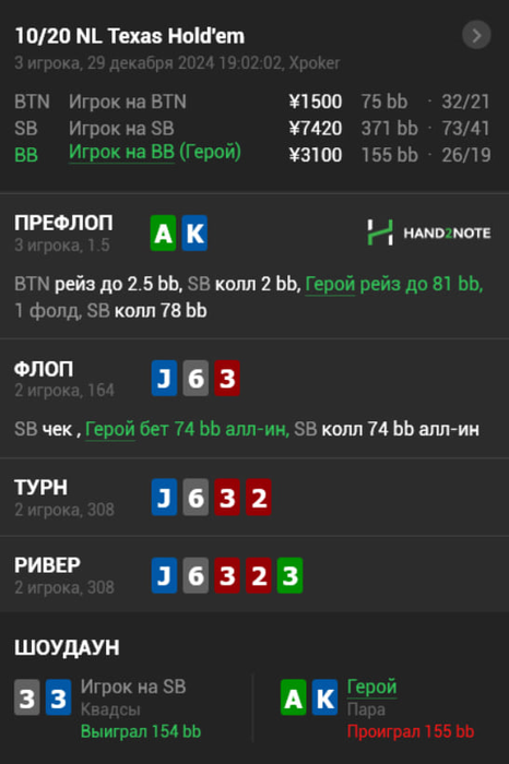 Привет! Я тут недавно и ищу блоги на которые хотел бы подписать для развития. И вот заметил, что очень удобно когда автор в первом сообщении блога обновляет информацию о своих текущих результатах с выкладыванием графиков. У тебя я прочитал, что начинал с НЛ2 а в последнем посте играешь НЛ400. Заинтересовало) Не мог бы ты в двух предложениях описать что именно тебя привело с НЛ2 к НЛ400? То есть понятно, что обучение. Но интересно что в бОльшем плане повлияло на развитие твоей игры. А что ты наоборот исключил, что бы это развитие не тормозилось. А то ведь полно блогов где люди вроде и тренируются и развиваются, а за 10 лет выше НЛ10 подняться не могут и жалуются на ГСЧ. Интересно в чем разница подхода к обучению.