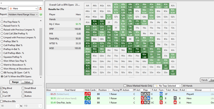 Boby, Во вкладке Statistics в ситуации колл префлоп на позиции ББ почему-то не показывает руки. А на остальных позициях показывает. В чём может быть дело?