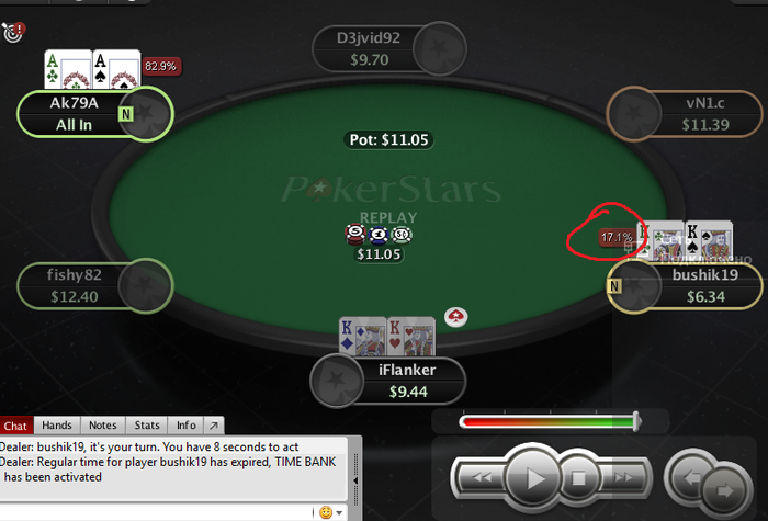 Turn: ($11.05) 6 (2 players - 1 is all in)