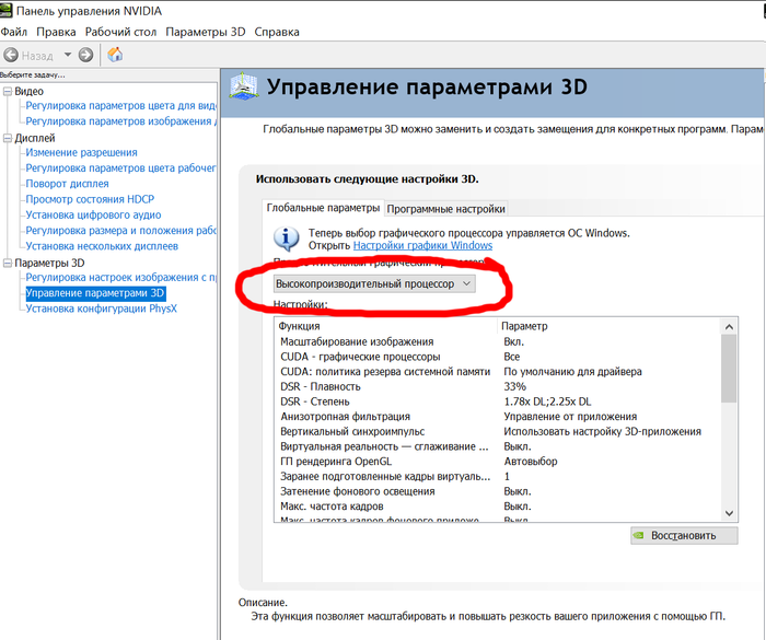 Get2fuckouttahere, не норм. Нужно в Панели управления NVIDIA, в Пуск/Параметры/Система/Дисплей/Настройки графики и в Электропитании выставить Высокую производительность.