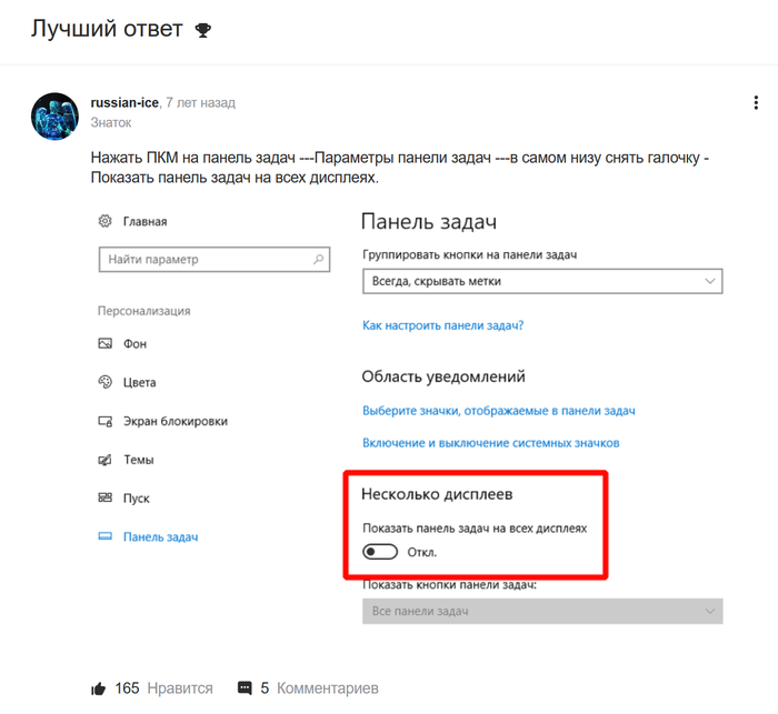 Можно ли на втором мониторе полностью убрать полоску панели задач? Или все таки ее только можно скрыть синхронно на обоих мониторах? Всплывает при выборе действий. Видимо как вариант сделать ее слева, и так же скрыть? Так как все действия за столами располагаются в нижнем правом углу.