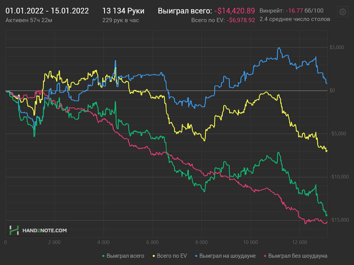 gambler14, помню в мае 2019 играл 5/10 омаху пятикарточную в приложухах. С самого начала я месяца садился каждый день божий день и каждый день продолжал безбожно лить. Просто вставал каждое утро, садился за столы и проебывал. Так продолжалось 2 недели, пока я не залил как раз упомянутые тобой 40к(ну тут правда есть ньюанс, что до этого выиграл 100, но ты тоже не анакомом очевидно питался). После этого в покер не играл около года. Так, что ты поаккуратнее с желаниями)