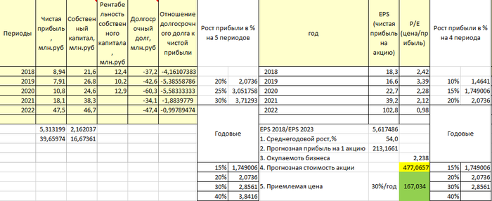 Согласно расчетов прогнозной стоимости акции через рост чистой прибыли диссонанса нет. Учитывая среднегодовой рост чистой прибыли и отсутствию долговой нагрузки в пятилетний период можно рассматривать на долгосрок, но не сейчас. Дорого.