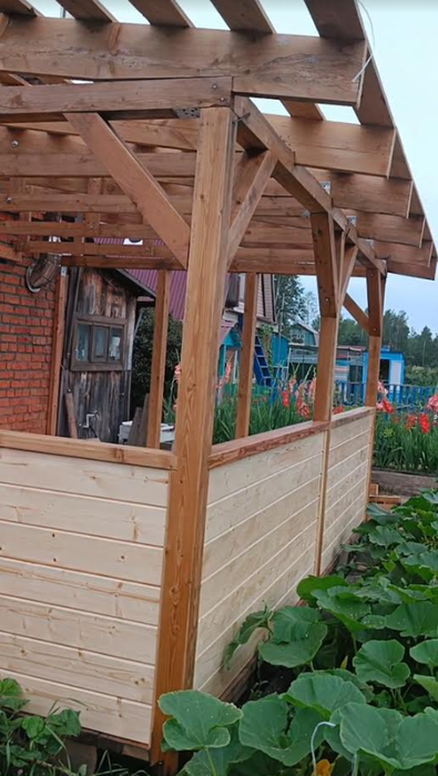 Беседку почти достроил для оффлайн встреч с друзьями. На стройку уже месяц ушел. По выходным и среди недели после работы выбираюсь. Крыша пока не доделена, потому-что металла нет.. Хотел покрыть профнастилом, но решил заморочиться с металлочерепицей, а её оказывается днем с огнем не сыщешь.
