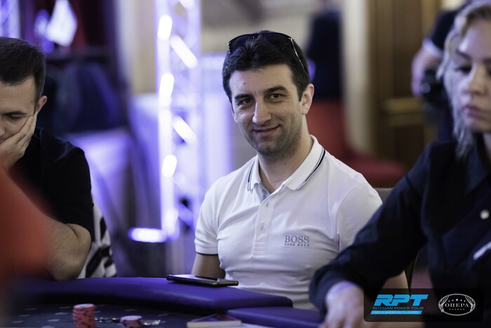 Перед самым перерывом Анатолий Злотников потерял почти все шашки в раздаче против Тиграна Пилояна. Злотников отрейзил из UTG, а Пилоян защитился на ВВ. По флопу Пилоян коллировал 200,000, на терне еще 500,000, а на ривере думал около двух минут над решением, после чего сделал хороший колл и вскрыл блеф.