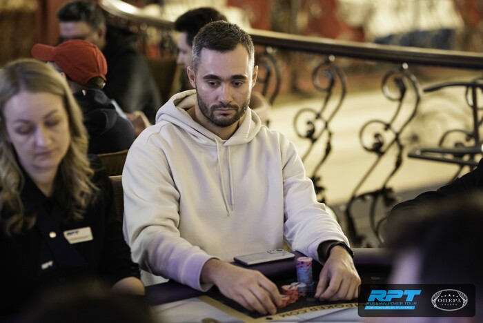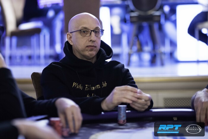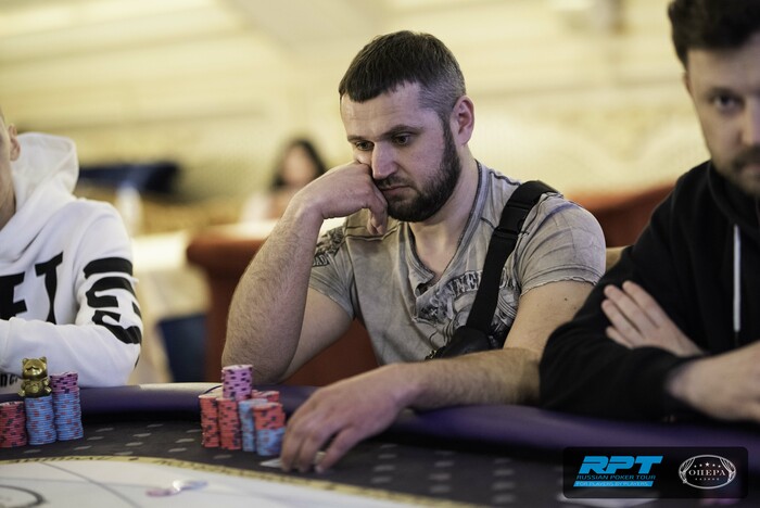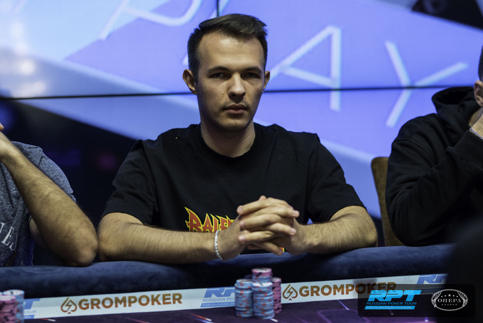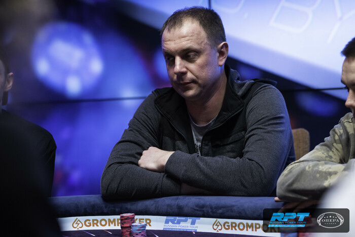 У Дмитрия Зазерского оставалось 560,000, было видно, что ну не с чем ему играть предфиналку. Дождался и запушил с малого в большой Дмитрия Руненкова, у того - инста колл. Доска . Руненков - 6,850,000.