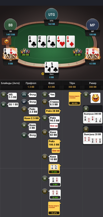 ну да ну да, коротко, на терне мы больше комбинаций бьем чем не бьем, я так прикинул, и странно что он велью на ривере не добрал