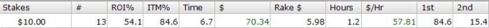 у меня срабатывает стопвин и я не могу заставить себя больше играть. 1.5 часа и хороший результат для меня. Но, мля, всего-то 13 игр... В принципе - это то, к чему я стремился. Минимизация потраченного времени и максимизация прибыли. Но бля, чем теперь заняться? Мне, покерному задроту совсем не по себе от остновки от катки...