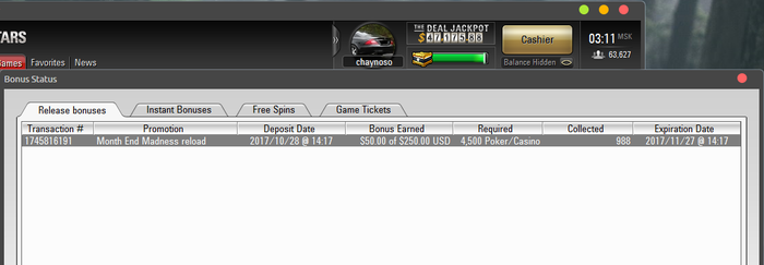 После получения бонуса у Вас будет 30 дней, чтобы отыграть бонусные средства, зарабатывая очки отыгрывания. Вы можете отыгрывать Ваш бонус играя как в нашем казино, так и/или в наших покерных играх. Необходимое количество очков отыгрывания зависит от валюты, в которой вносится депозит, а именно: