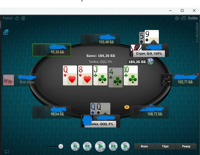 Чел прыгает, выигрывает пару кушей/ББ и убегает. Через какое-то время история повторяется... Это норм.? Если это нормальный, сильный игрок - да пусть выигрывает ради бога, я сам от него уйду. Но вот так урвать и не дать возможности отыграться - ну такое... Вопрос скорее этический, конечно. Поэтому я и вынес на голосование. Ты проголосовал "против", кто-то "за".