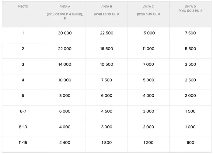 Кроме того, активные игроки имеют возможность получить дополнительно приз в турнирном лидерборде. Играй, попадай в призы, получай за это очки и у тебя будет возможность разделить 100 000 рублей - всего будет 15 призёров.