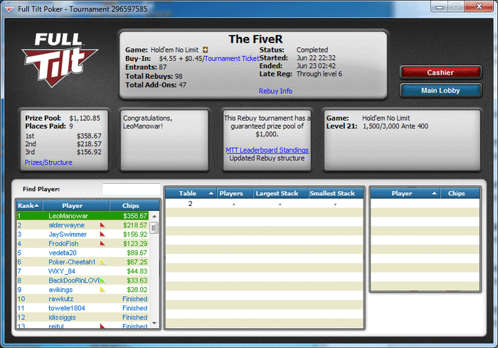 Сегодня опять побывал на финалке Файвера, но там допустил дорогую ошибку, остался с коротким стеком и вылетел на седьмом месте.