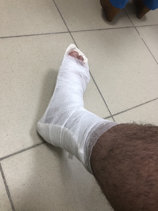 Сегодня бедбитнуло на футболе. Соперник пошёл до конца, когда я был первый в эпизоде. Мяч я выбил и по инерции и его выбил. У меня перелом 5 плюсневой, его на скорой увезли. Видимо что-то похуже