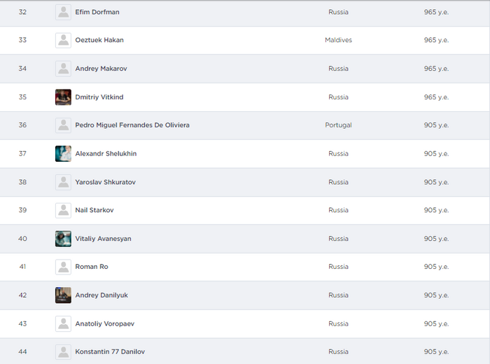Доска - . Игорь занял четвёртое место (10765 у.е).
