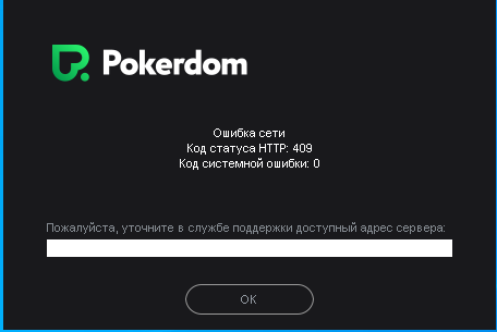 ПокердомКонсультант, здравствуйте! Сегодня по каким-то причинам отключали интернет дома. А после того, как сделали, не могу войти на Покердом. Выдает ошибку 409.