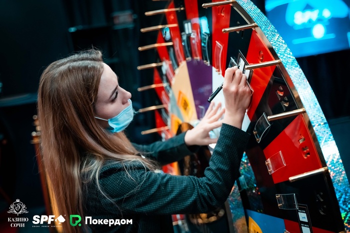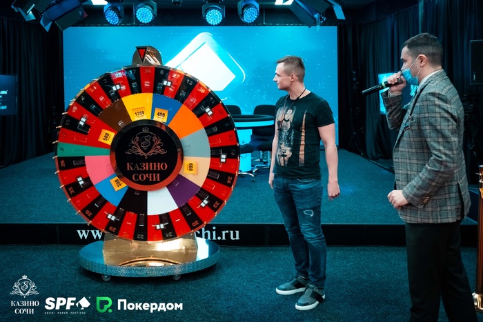 Так как многие игроки из топа лидерборда прошлой серии SPF сегодня не присутствовали было принято решение разыграть 7 призов среди участников турниров на данный момент. С помощью всё того же колеса фортуны определяли стол, а уже за самим столом по старшей карте забирали игрока.