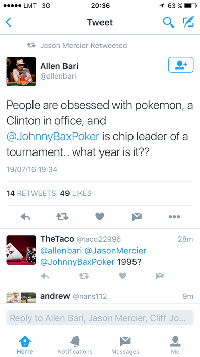 Лучший твит серии : на мой вопрос финалисту мейна Куй Нгуену " ты больше любишь играть в оффлайне или онлайне?" он ответил, что предпочитает играть в баккару!