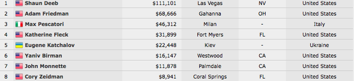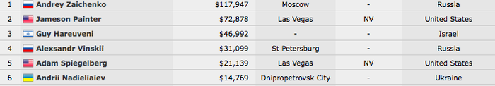 первую часть серии мы уже проанализировали - 11 финалок за 30 турниров, пришло время подводить окончательные итоги. Тройная финалка в турнире №34 по 2-7 с тройным обменом (би 1,5К), 6-е место Андрея Наделяева (Украина), 4-е место Александра "ЗеБест" Винского (Россия) и первый браслет Андрея "Зая" Заиченко (Россия)