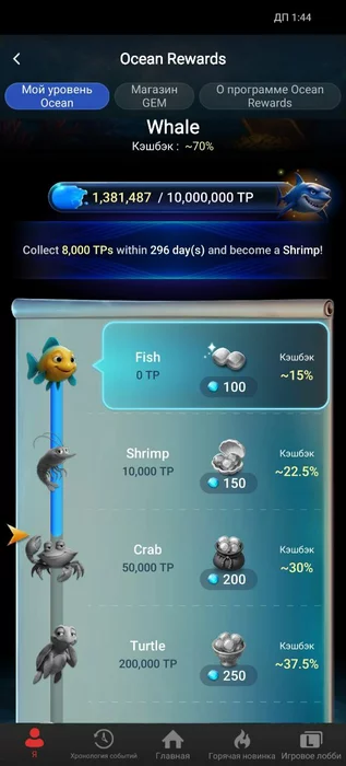 Актуальный ранг указан как Кит, а шкала прогресса рисует краба?