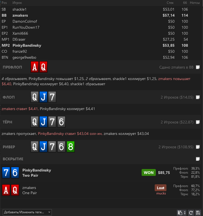 Честно говоря, не ожидал такого отклика в виде поддержки и концентрации полезных советов. Всем неравнодушным большое спасибо, боги покера все видят и готовят каждому по апстрику