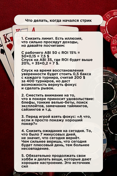 Если наладить хотя бы 2–3 зоны и временно спуститься по лимитам, то стойко преодолеть стрик будет легче.