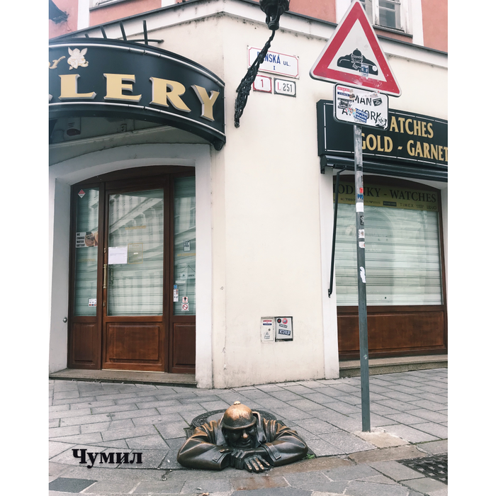Скульптура «Чумил» (Man at Work) — бронзовая фигура мужчины, выглядывающего из люка. Самая фотографируемая точка Братиславы. В Омске есть похожая скульптура — памятник Сантехнику Степанычу.