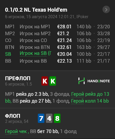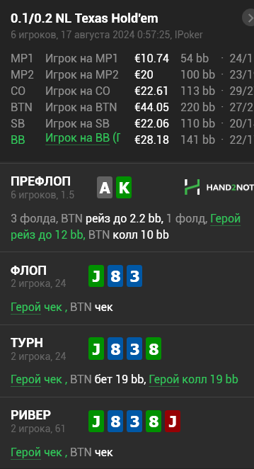Intelligent8 @ 19.08.242.Вторая вообще кринж. Чел 90 впип. Они АВ играют 5бетами. И ты фолдишь КК вс такого.Что?