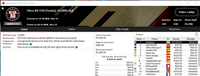 Сыграл одну сессию после предыдущего поста и закрываю пакет в 23 турнира в +1700.
