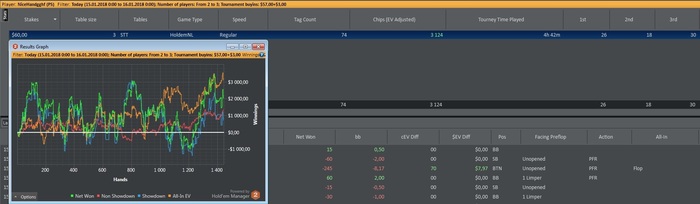 Дисциплина: 5. Делал неотложенные дела сначала, и не торопился. Качество: 5. Все обоснованно. Тильтоустойчивость: 5. Были причины для подтильтовки, но достаточно с правильным пониманием относился к таким моментам, даже "заставлять" себя не приходилось. Диспа: Так себе. Средняя опять по ощущениям. Хотя сдавали наверное лучше чем стандартно, но при этом у оппов тоже все хорошо было. Настрой: Хороший, с интересом играл. Плотность: 50%. Но реги попадались крепкие, было не просто. Тут и сдавали не плохо им, но и отмечу, что и подстройки хорошие делали против меня. Тоесть не спали те реги с которыми попадался, а играли.