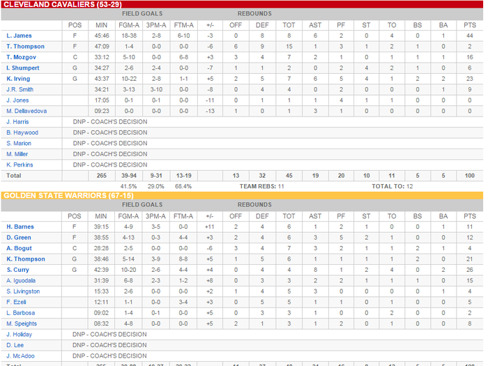 Думаю важнейшим фактором в исходе серии будет играть скамейка. У Кавс один добротной бенчер, который в иной день может зарешать (ДжейАр). За ним пустота. С потерей Ирвинга и переводом в старт Делли уж точно. Смотрим сегодняшнюю стату: