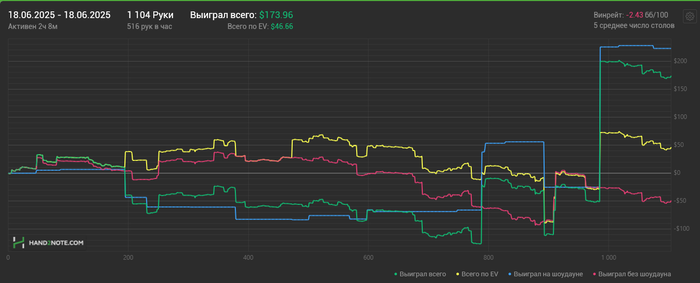 18.06.2025: 128 минут, 1104 рук, nl50-200 +$207.