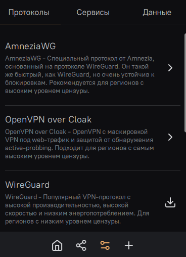По поводу настройки Амнезии - можно выбирать не топовый протокол OpenVpn over Cloak, на нём на телефоне ютуб медленно работает, там траффик сильно шифруется, достаточно Amnezia WG.