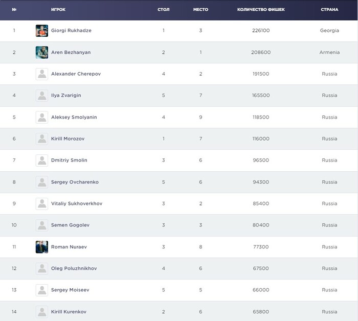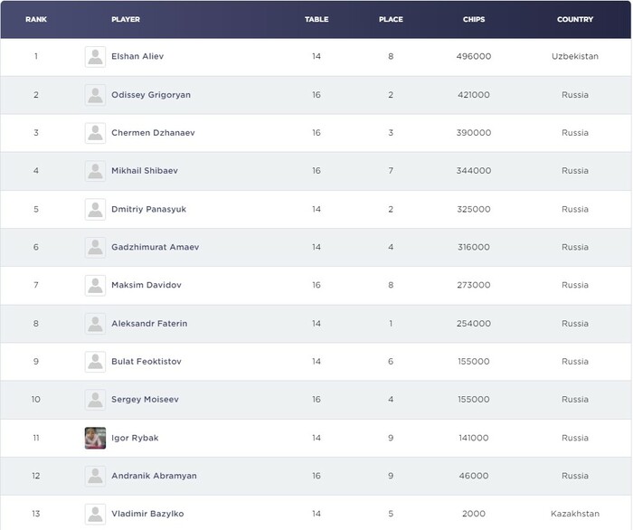 День 1А Sochi Poker Cup доиграли до денег. В день 2 прошли 13 человек. Чипкаунт: