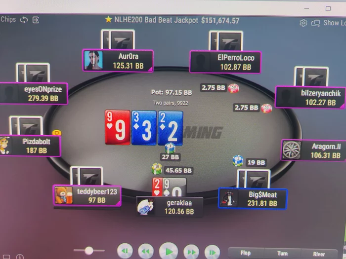 Для меня он пассивный и рисковать сразу 180бб дисперсионно . Как по мне у него нет ФД в пуше , скорее нет ОП.