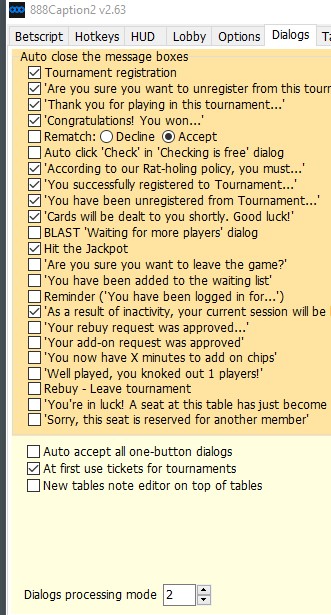Эта проблема появилась только на новых столах. Есть подозрение, что это очередной баг самого клиента. Функция автозакрытия может работать в 5-6 турнирах, потом снова не работать (нужно нажимать "ок" вручную). Этот баг не срочный, возможно со временем после обновления само нормализуется. Есть еще одна просьба. Возможно ли отслеживать с помощью кепшена расположение этого окна?