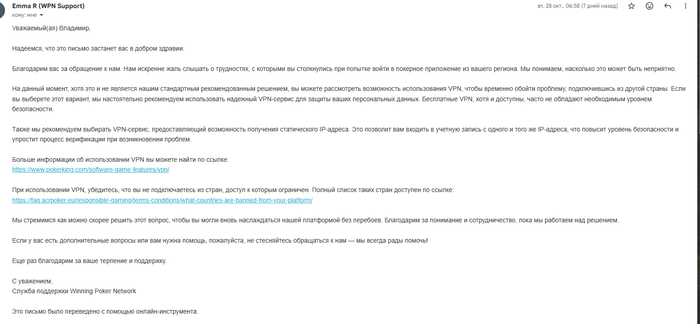 Дня доброго есть проблема не могу её решить. Клиент Poker King после запуска и входа в аккаунт выдаёт примерно такое сообщение. Саппорт отписал что аккаунт активен и всё хорошо, но по факту я не могу попасть в клиент. А даже если пускает то через секунд 15 вылетает данная плашка, сталкивался кто с этим?