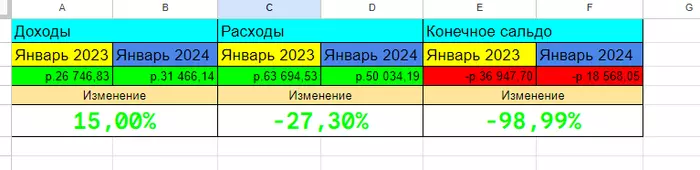 Запилил себе новую таблицу, сравнивая январь 2023 и 2024 годов.