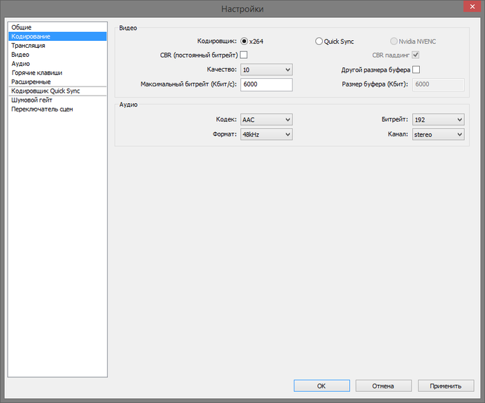 Настройки для подкручивания - галка CBR в настройках кодирования, качество, битрейт там же. Остальное в дефолте вроде бы должно давать нормальную картинку, мб тонкости какие кто подскажет.