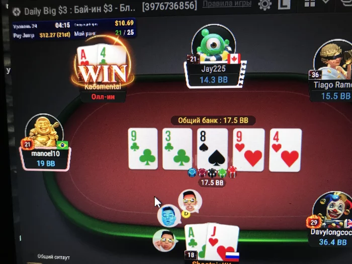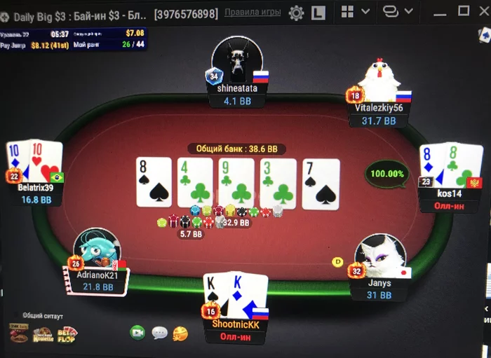 вишенка на торте. Покерок, сука такая, отвалился впервые за несколько часов вот на таком моменте: