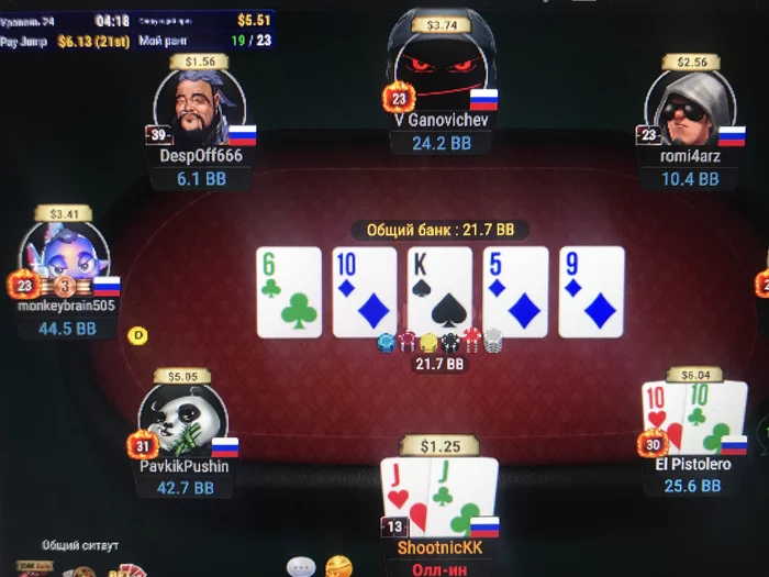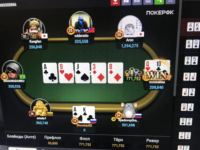 Вылетел А9 в QJo 11м из 600, 1500$ общий и А9 в KJo 12м из 3500, 9000$.