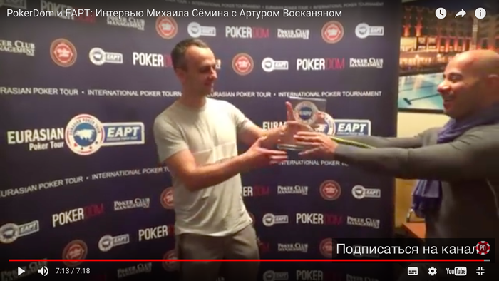 Володя, Серёжа привет. Ира 120 тугриков твои;) Поясню, играли с Ирой за одним столом, запушил JJ, получил колл от КК. Переехал, валя на флопе. Кричу в след уходящей Ире попаду в топ 3 отдам 3% в ваш семейный бюджет. Санек подметил выбью тебя в мейне. Надеюсь немного кэша сгладит напряженность)))))