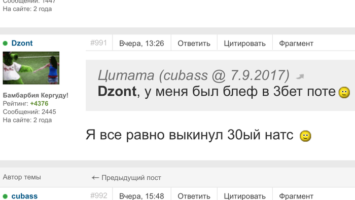 С тобой тут лысого гоняю по форуму, вместо того чтобы покатать) На микросах нл2-нл5 так и играю понемножку регулярно, как есть время свободное. А так то больше ебарь теоретик, чем шпилер