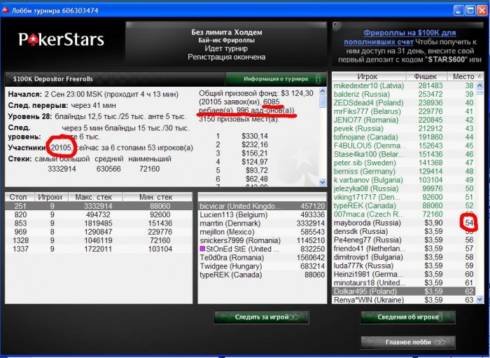 может быть по-позже буду играть...это такое нудное занятие изо дня в день катать одно и тоже...особенно когда румынские и немецкие лютые опы одолевают...намного проще и выгодней катать турики по 1-3 бакса в других румах безлимитный холдем начиная от бетфаера и кончая париматчем...поле там настолько слабое - что если сравнивать с ПС кажется что ребята играют фрироллы! Намного меньше устаешь отыграв примерно около 25 турниров по 1-3 бакса в таких румах (в сумме примерно так и набирается за вечер) чем сыграть 10 ХА...и по деньгам намного выгодней...