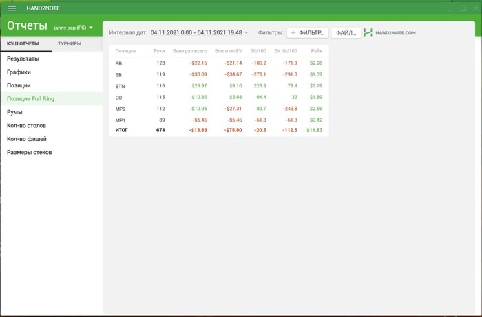 Проиграл бы больше, если бы не доехало в парочке раздач с низу.