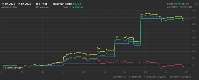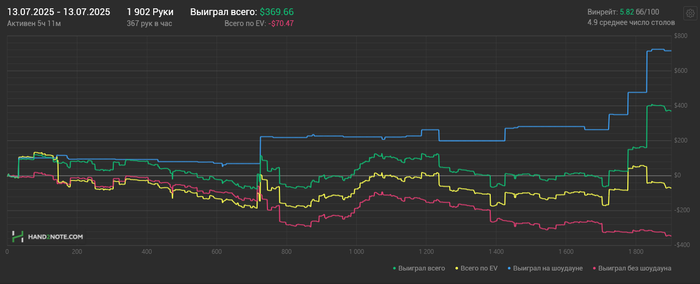 Что-то не очень хорошо выспался, лез в ненужные споты, которые я ещё и плохо играю, да и вообще думалось тяжело сегодня, но столы были неплохие, в ноль закончить в таком состоянии тоже неплохо.