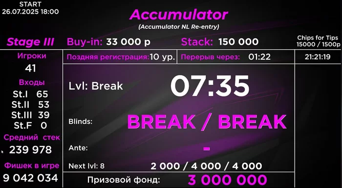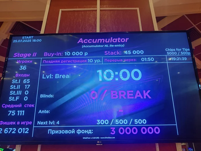 Ладно, просто не стоило сегодня в интернете играть, концентрации не хватило на второй день турнира, вчера потратил большую часть. Стек ещё есть, почти половина среднего, попробую раскрутиться.
