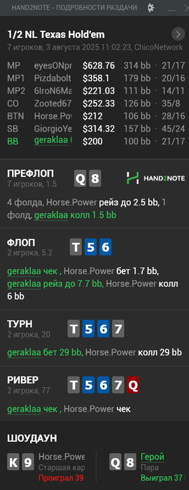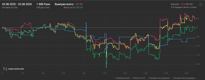 02.08.2025: 212 минут, 1888 рук, nl50-200 +$253.